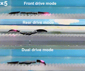 随后,红外光逐步移向机器人中部,并不断触发身体的热弯曲收缩,使得机器人整体收缩前进。
