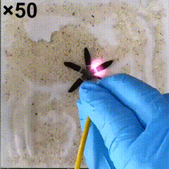 一束红外光首先照射在机器人头部,PNIPAm凝胶海绵感受到Fe3O4纳米颗粒的发热而迅速变形,并能与粗糙基底形成“卯榫结构”,从而增大摩擦力。
